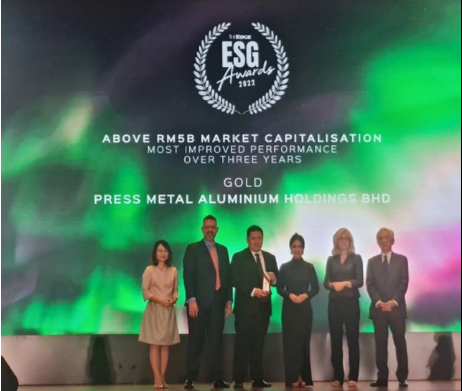 On November 28, the ESG Annual Awards Dinner hosted by renowned media group THE EDGE was held in Kuala Lumpur, Malaysia. Among them, Press Metal International (PMI) parent company, Press Metal Aluminium Holdings Berhad (PMAHB), won the gold award in the Industrial service category and the gold award for best progress in three years. The awards are evaluated by FTSE Russell on the basis of publicly disclosed information through more than 300 individual evaluations. This is a high recognition for the company’s environmental, social and governance (ESG) practices.