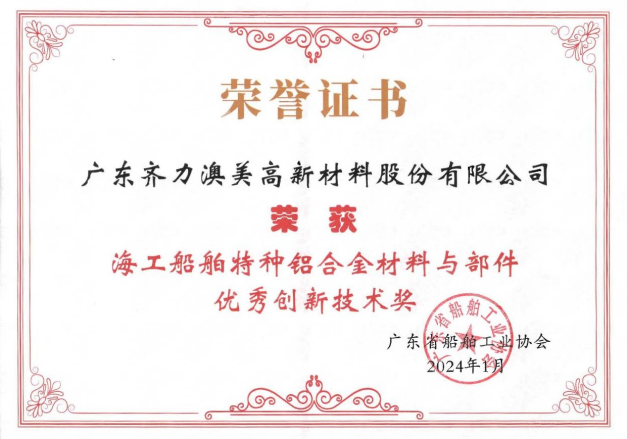 Recently, Guangdong Qili Aomei High tech Materials Co., Ltd. passed the scientific and technological achievements appraisal meeting of the project of "Research and Industrialization of Key Technologies for Special Aluminum Alloy Materials and Components of Marine Engineering Ships" in Guangdong Shipbuilding Industry Association, and won the "Outstanding Innovative Technology Award". This is a high recognition of our company's research and innovation in ship aluminum profile products, as well as an affirmation of the quality and technical level of our ship products.