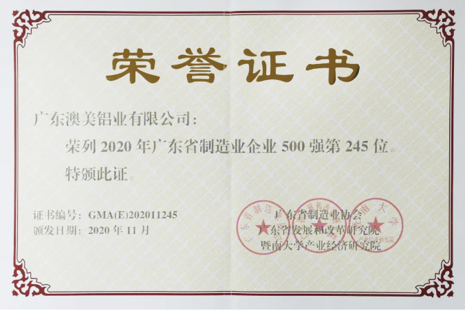 首次榮膺廣東省制造業(yè)500強(qiáng)企業(yè)